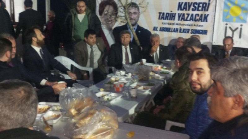 Kayseri İyi Parti İl Başkanlığı Erkilet'te iftar yemeği verdi. İftar yemeğine Millet İttifakının bileşenleri Deva partisi, Cumhuriyet Halk Partisi, Demokrat Parti ve Gelecek Partisi yöneticileri ile birlikte çok sayıda İyi Partili katıldı.